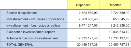 Le Budget Primitif 2026 a été adopté comme suit, lors de la séance du 24 février 2026 :