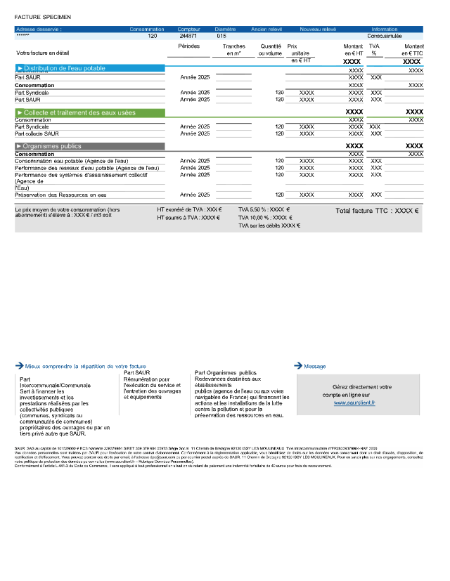 SAUR n’est pas obligatoirement gestionnaire du service d’assainissement de chaque commune du Syndicat mais elle perçoit les redevances correspondantes, en tant que Service des Eaux, et elle les reverse aux collectivités et à leur exploitant le cas échéant.